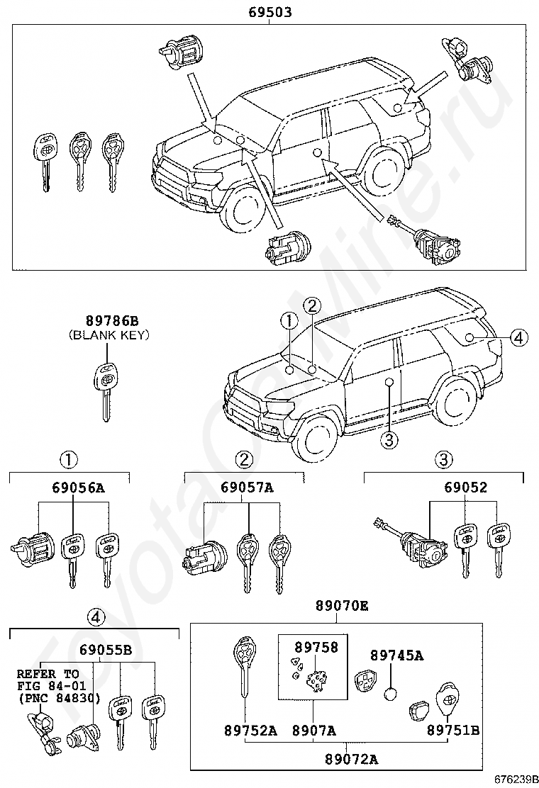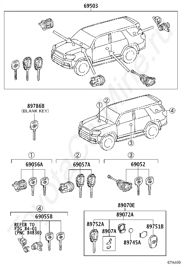 Комплект личинок замков TOYOTA 4RUNNER