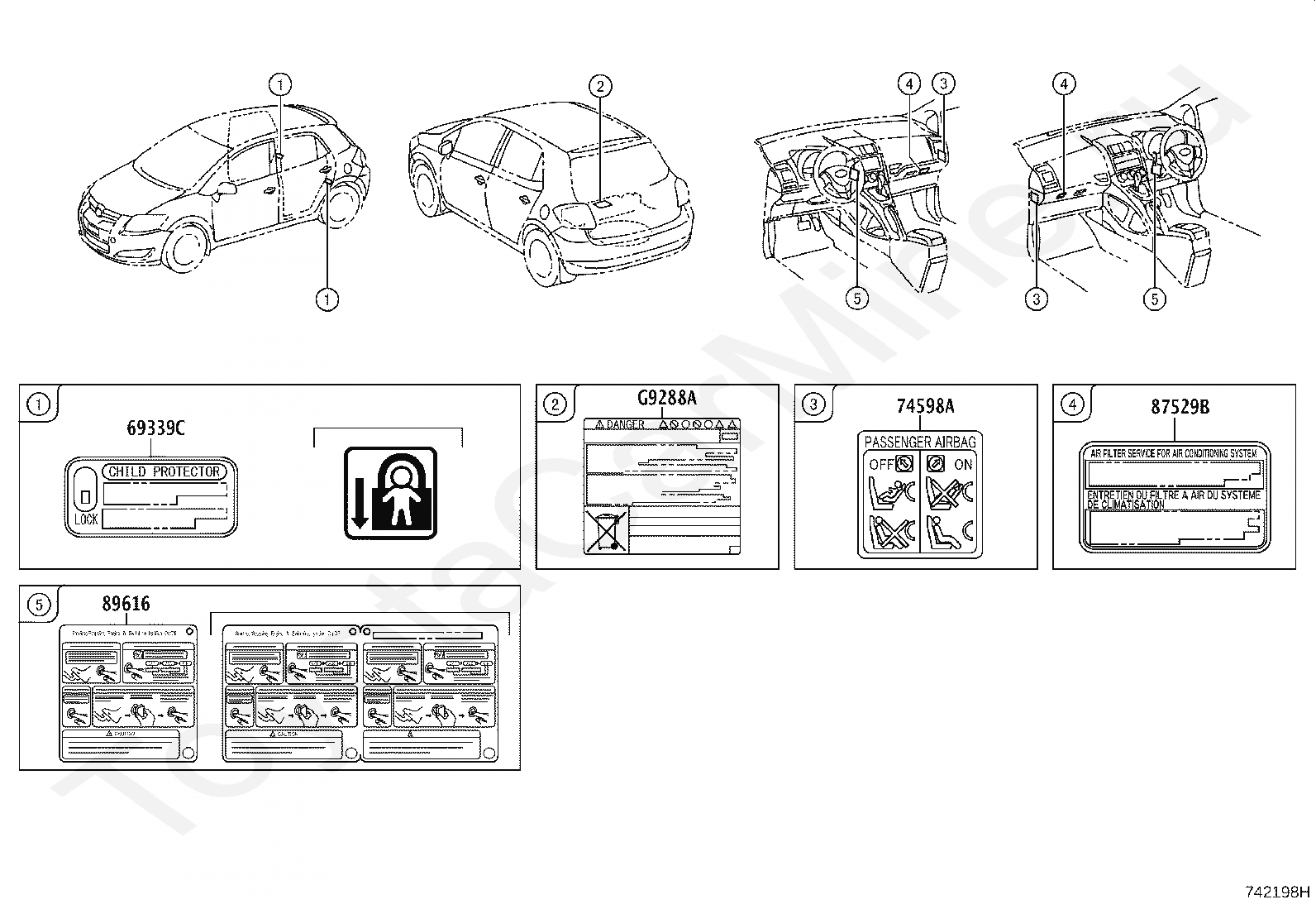 Информационные таблички TOYOTA AURIS/HYBRID (UKP)