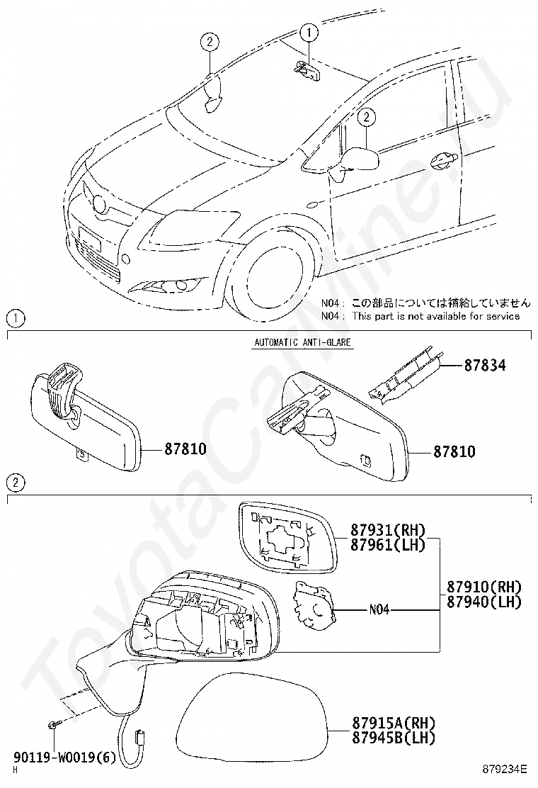 Зеркало TOYOTA AURIS/HYBRID (UKP)