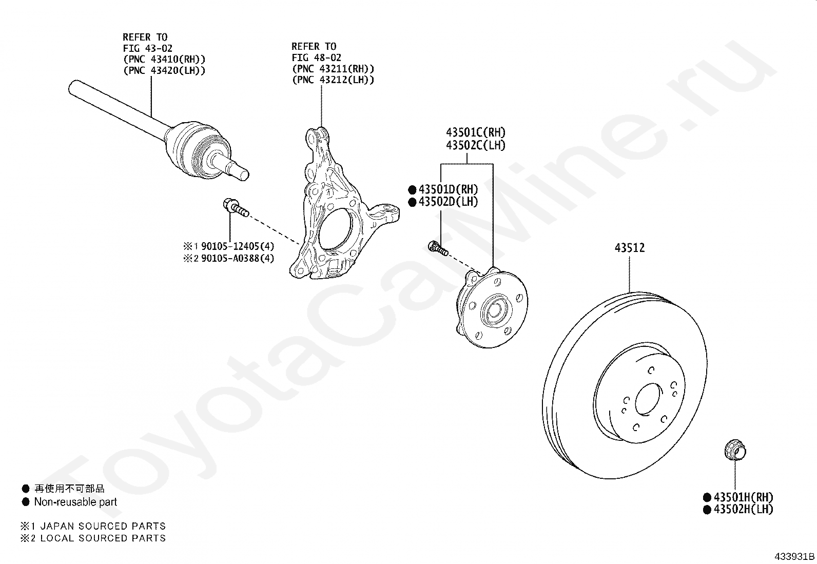 Передняя ступица и тормозной диск TOYOTA AVALON