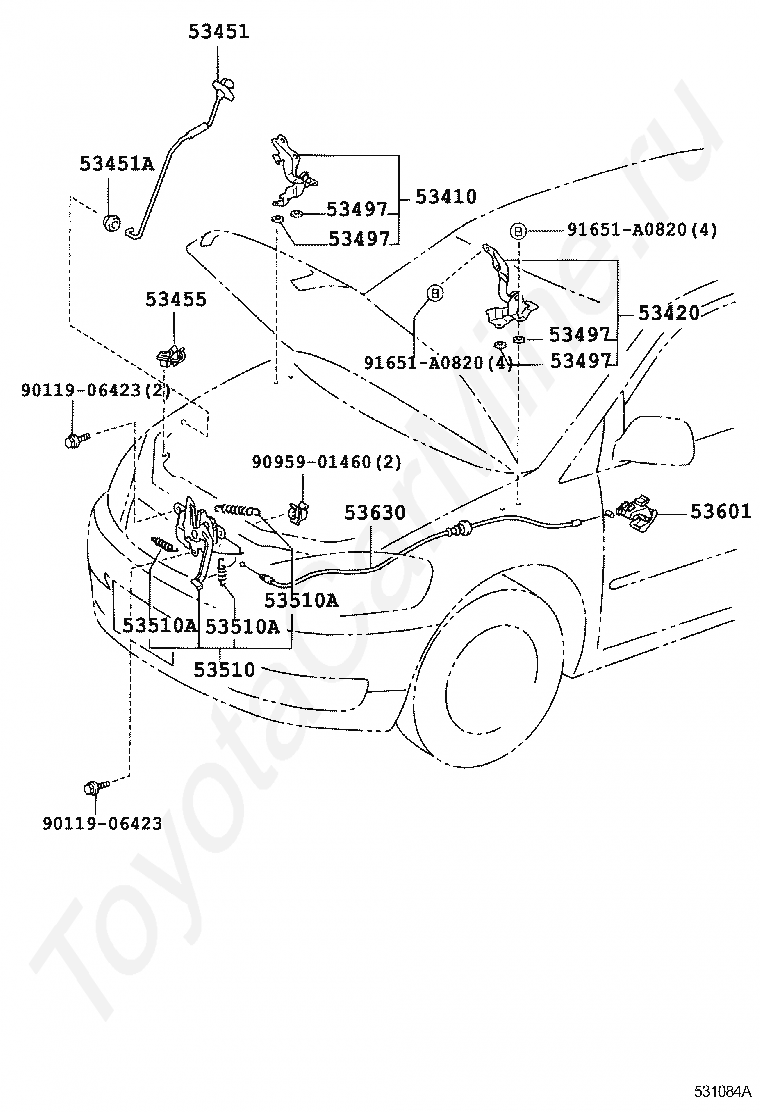 Замок и петли капота TOYOTA PICNIC/AVENSIS VERSO