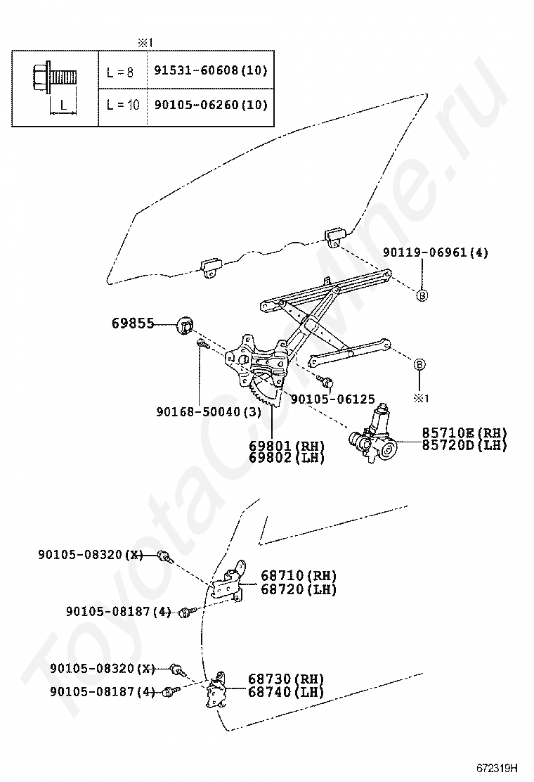 Стеклоподъемник и петли передней двери TOYOTA PICNIC/AVENSIS VERSO