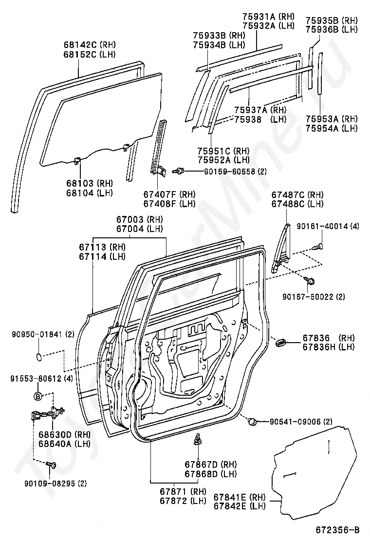 GLASS SUB-ASSY, REAR DOOR, RH