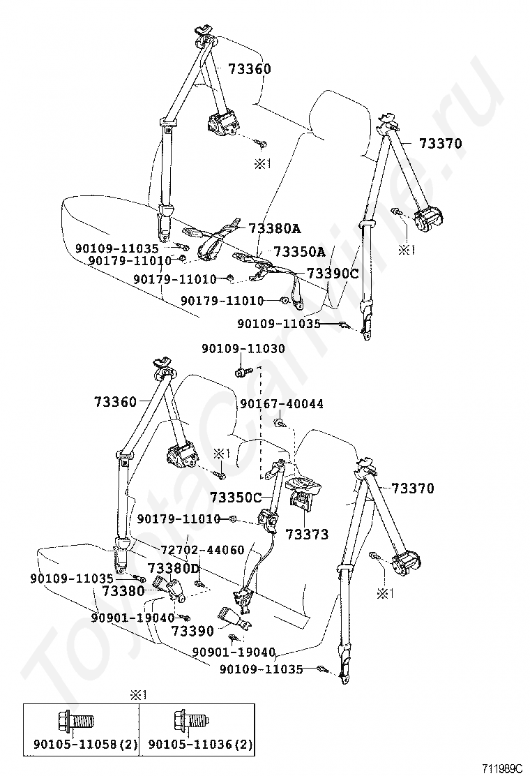 BELT ASSY, REAR NO.1 SEAT LAP TYPE, CENTER