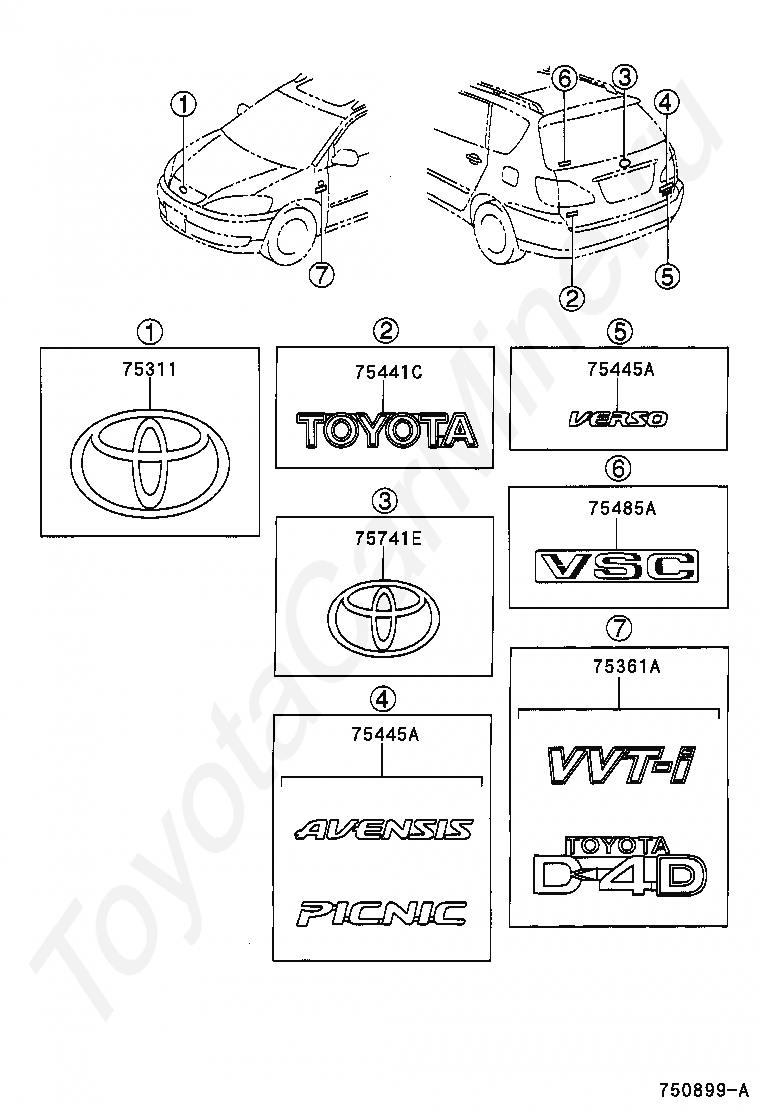 Эмблемы TOYOTA PICNIC/AVENSIS VERSO