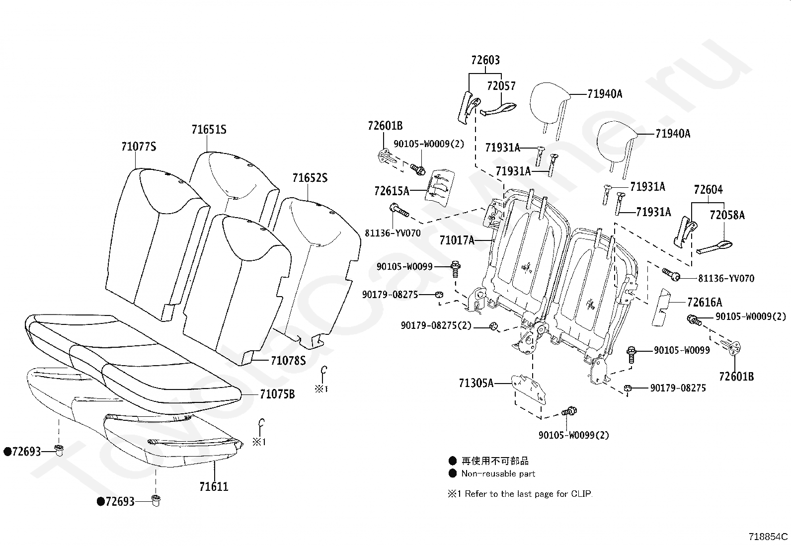 COVER, REAR SEAT BACK, RH (FOR SEPARATE TYPE)