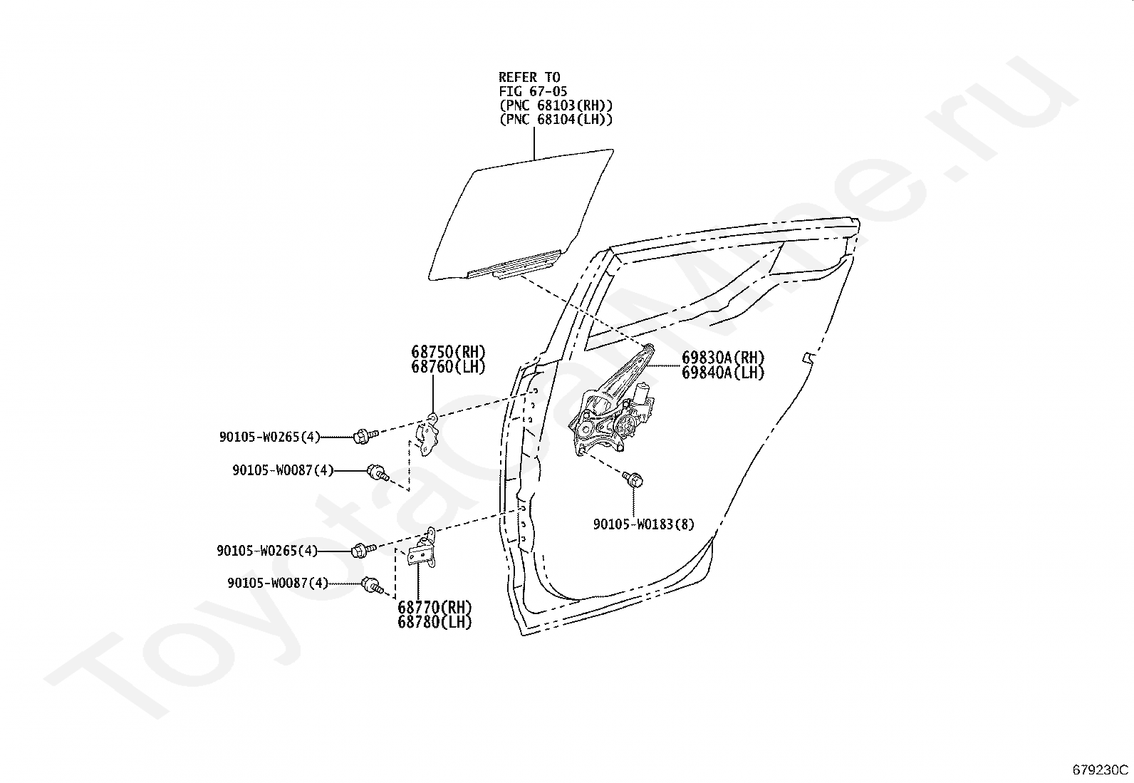 Стеклоподъемник и петли задней двери TOYOTA C-HR