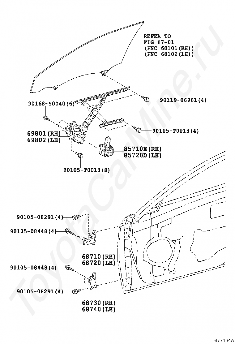 Стеклоподъемник и петли передней двери TOYOTA CAMRY/AURION/HV(ARL)