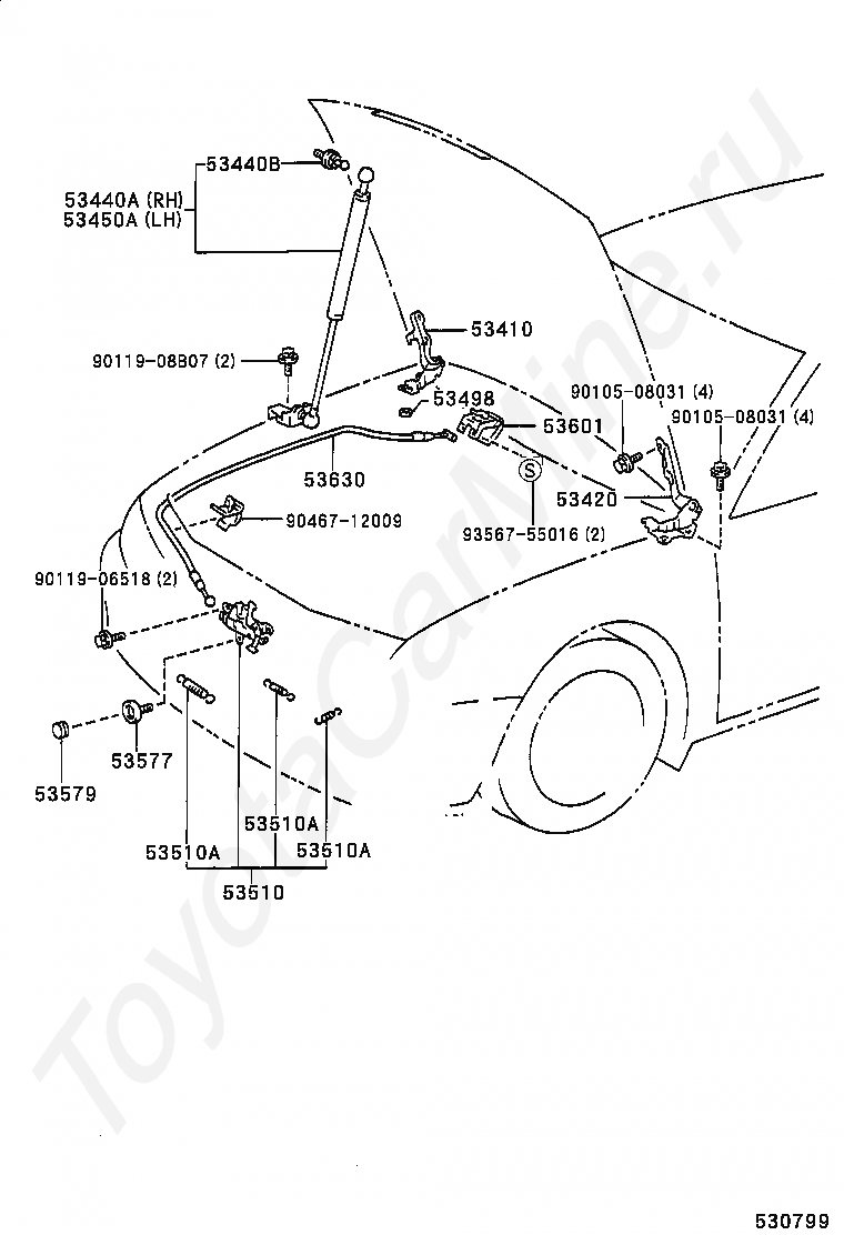 Замок и петли капота TOYOTA CAMRY GRACIA