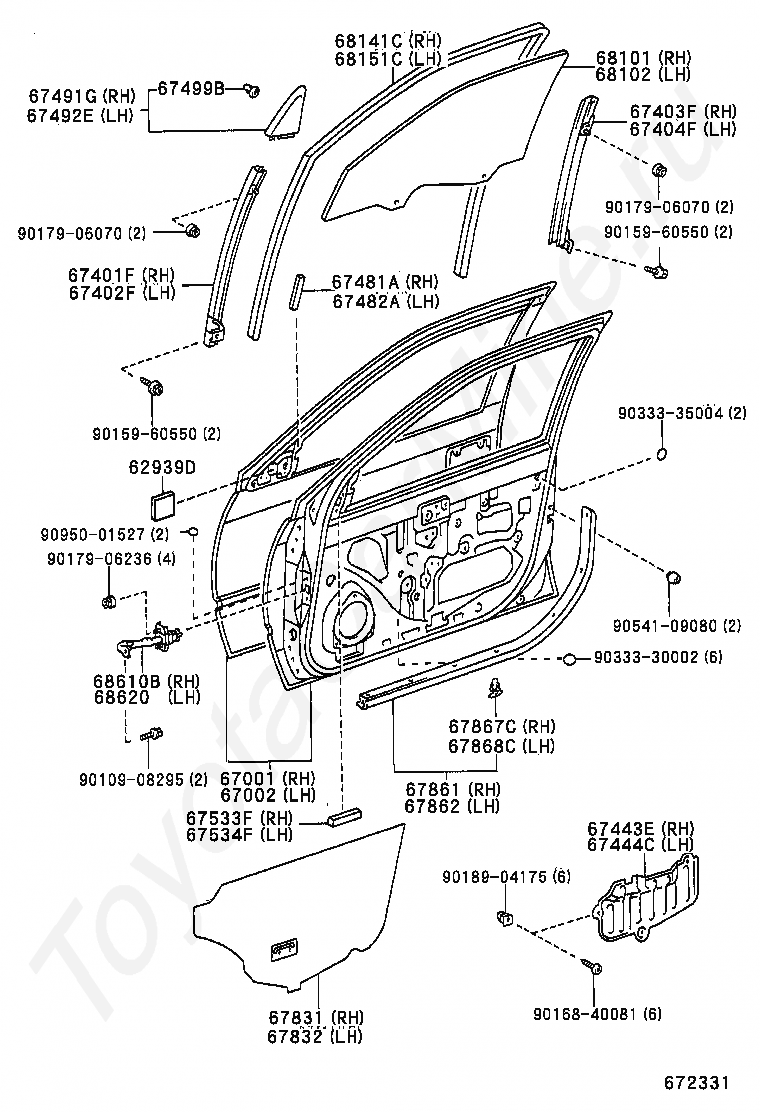 GLASS SUB-ASSY, FRONT DOOR, RH