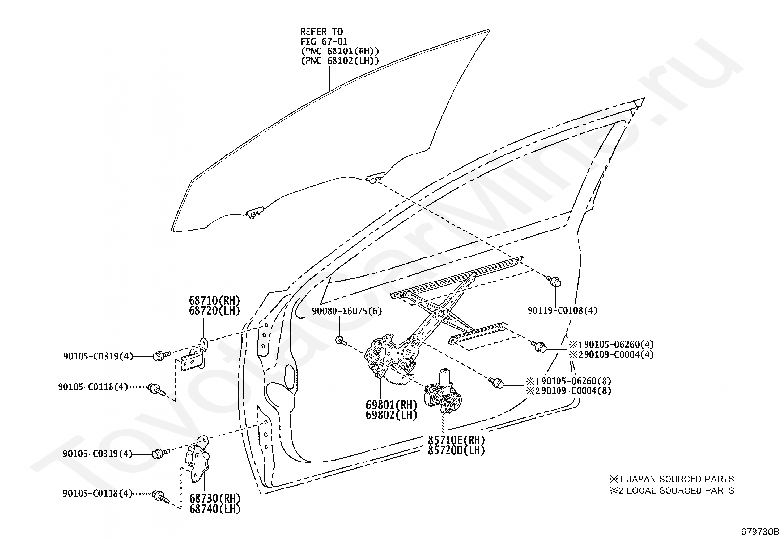 Стеклоподъемник и петли передней двери TOYOTA CAMRY/HYBRID (CHINA)
