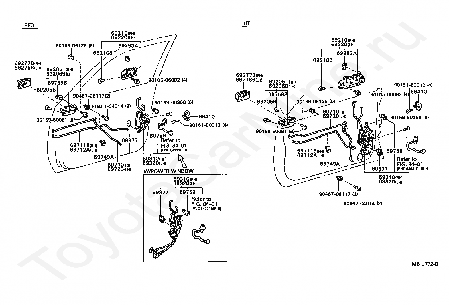 Замок и ручка передней двери TOYOTA CAMRY/VISTA