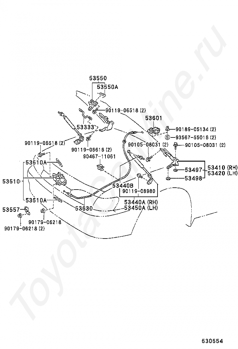 Замок и петли капота TOYOTA CAMRY (NAP/SED/WG)