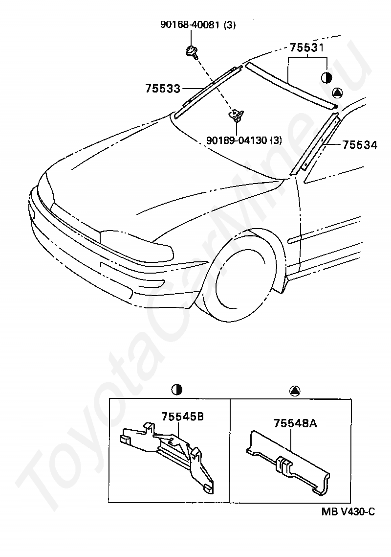 CLIP, WINDSHIELD OUTSIDE MOULDING, NO.1