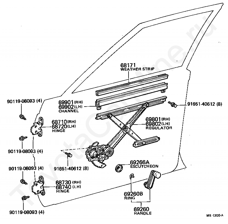 Стеклоподъемник и петли передней двери TOYOTA CARINA