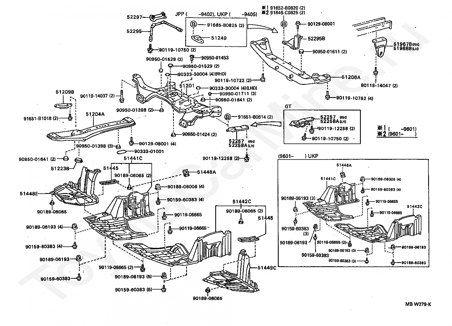 SUSPENSION CROSSMEMBER & UNDER COVER TOYOTA CARINA E (UKP)