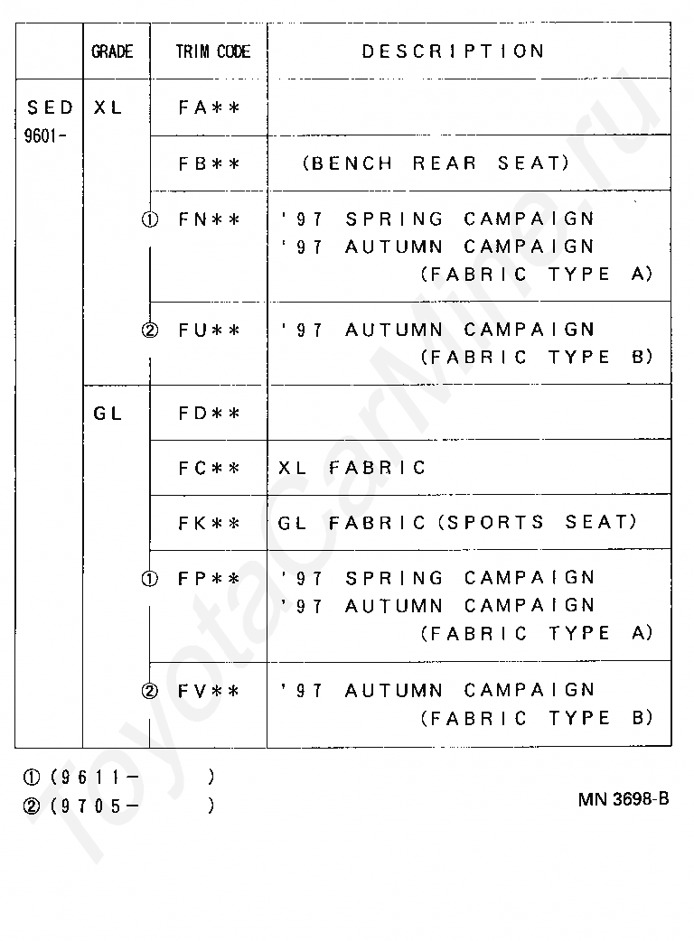 COLOR FINDING TABLE TOYOTA CARINA E (UKP)