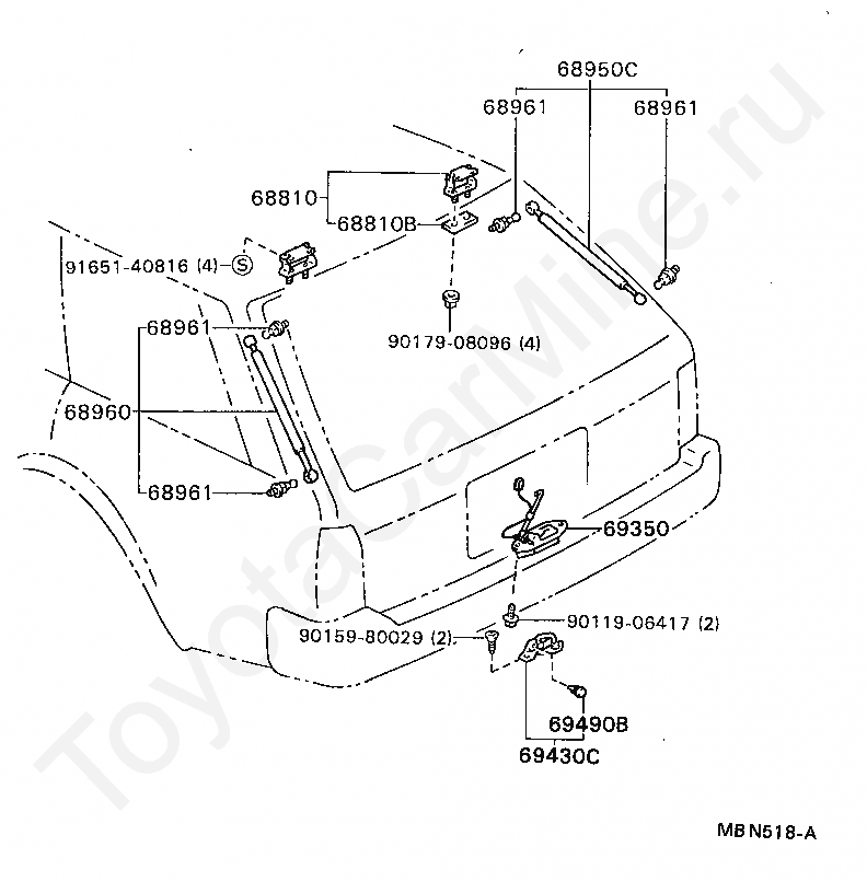 Замок и ручка двери багажника TOYOTA CARINA FF