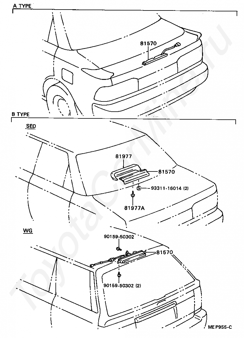 Центральный стоп-сигнал TOYOTA CARINA FF
