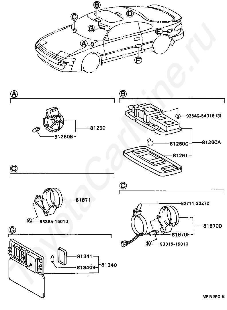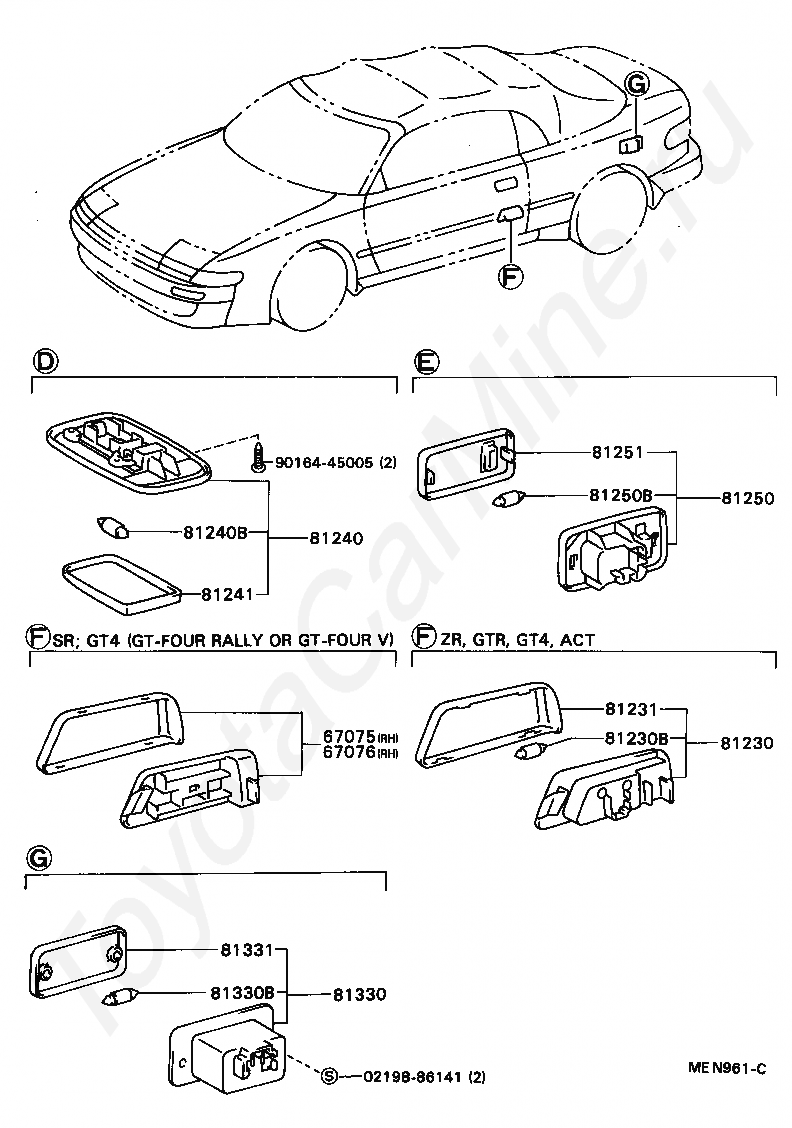 Салонные лампы TOYOTA CELICA