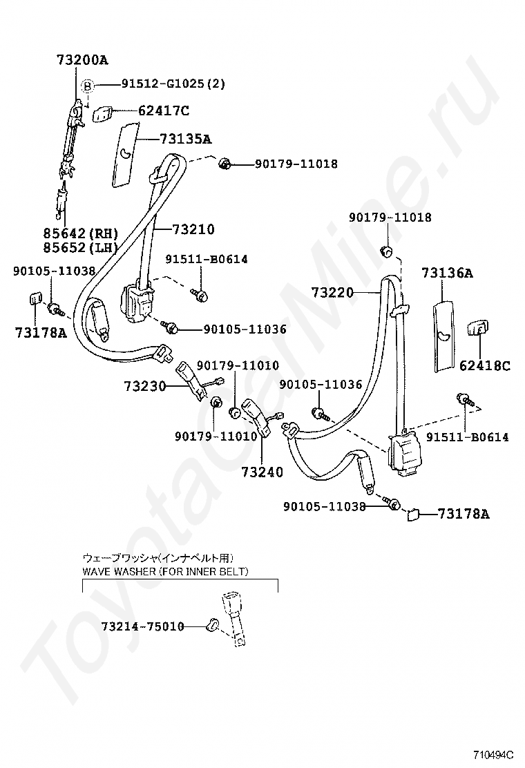 BELT ASSY, REAR SEAT 3 POINT TYPE, CENTER RH
