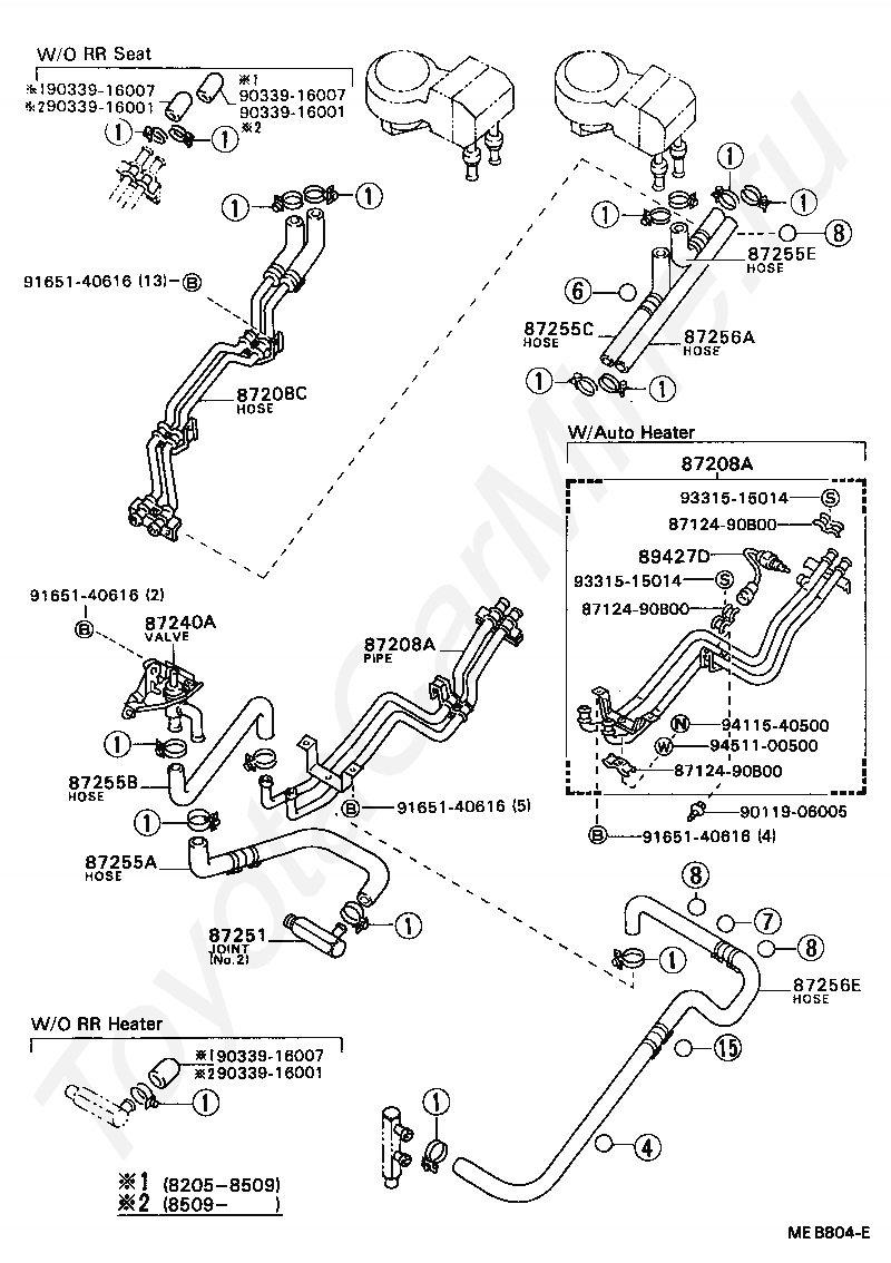 HOSE, REAR HEATER WATER OUTLET, E (TO ENGINE)