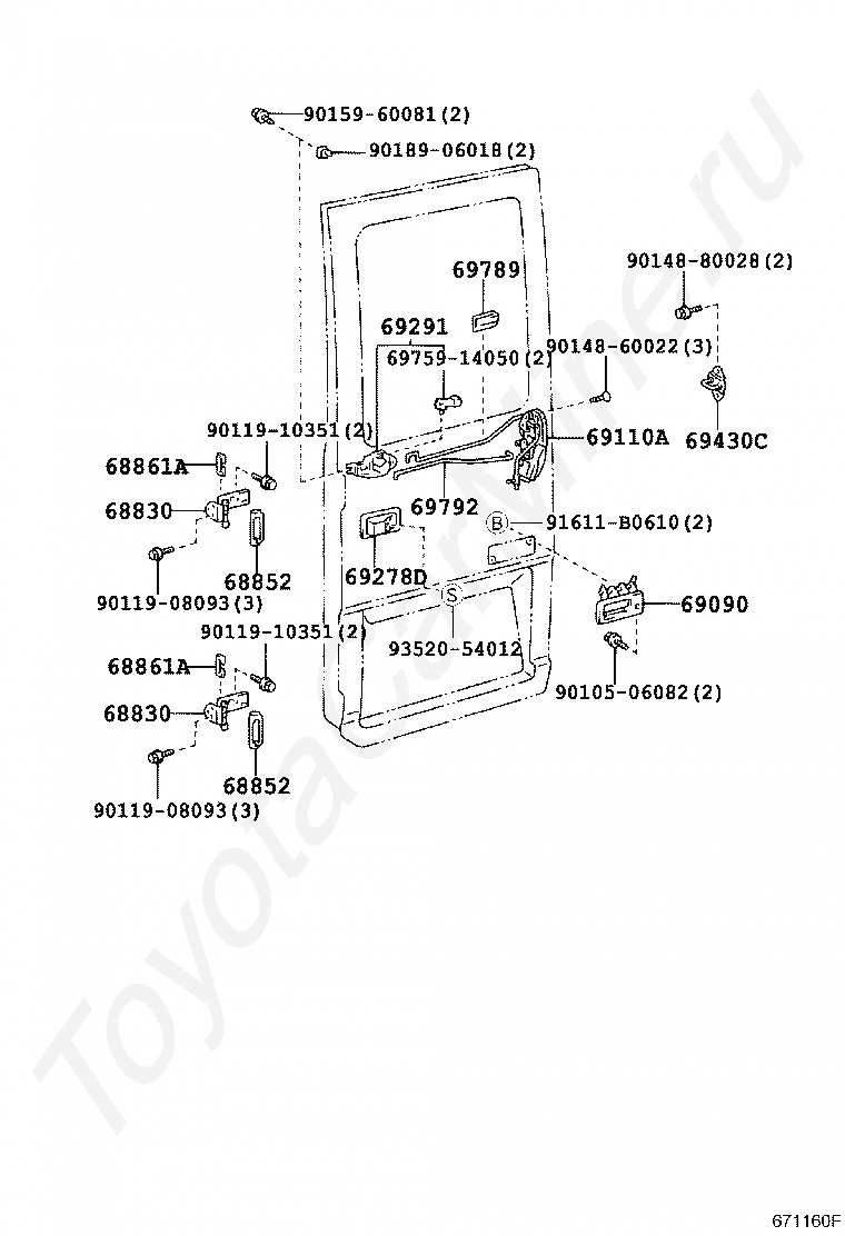 Замок и петли двери багажника TOYOTA COASTER