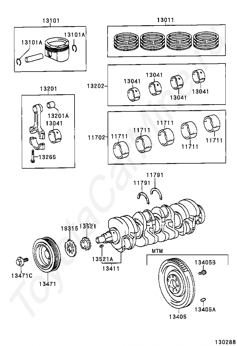 Коленвал и поршни TOYOTA COROLLA SED/WG