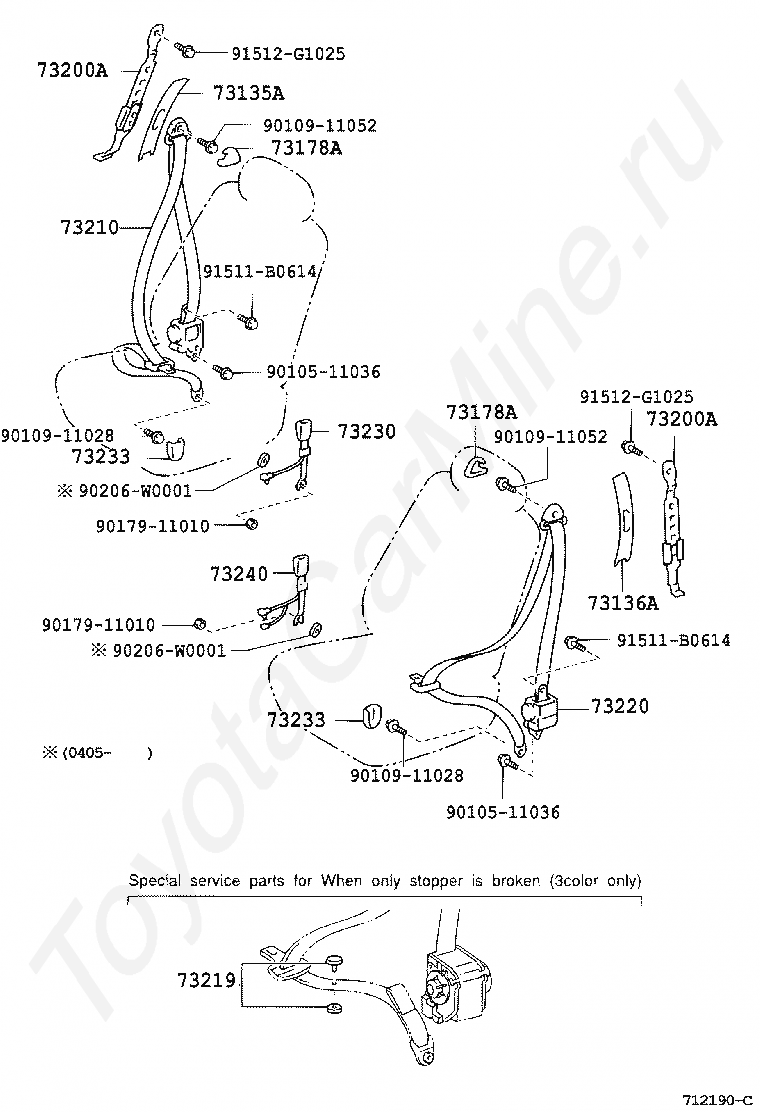Ремни безопасности и детские кресла TOYOTA COROLLA SED/WG (JPP)