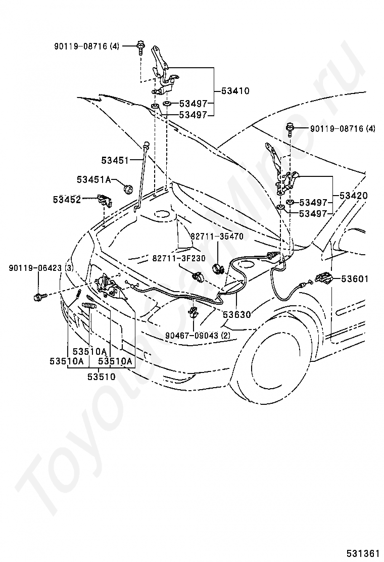 Замок и петли капота TOYOTA COROLLA HB (JPP)