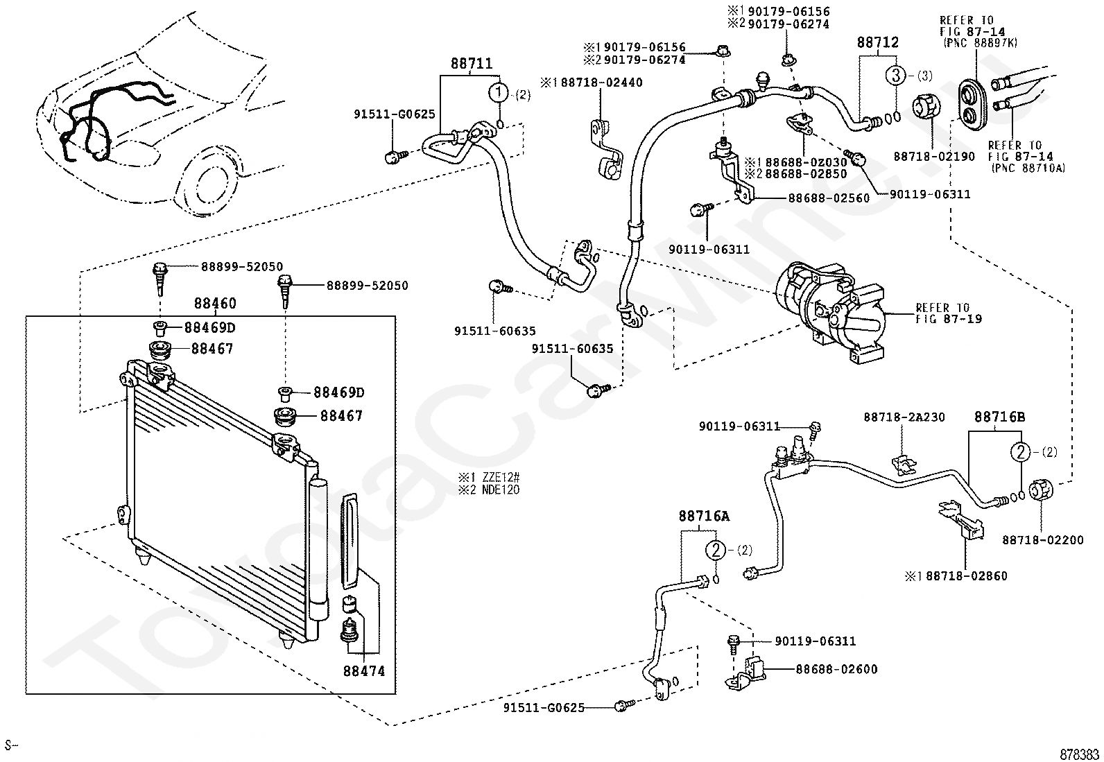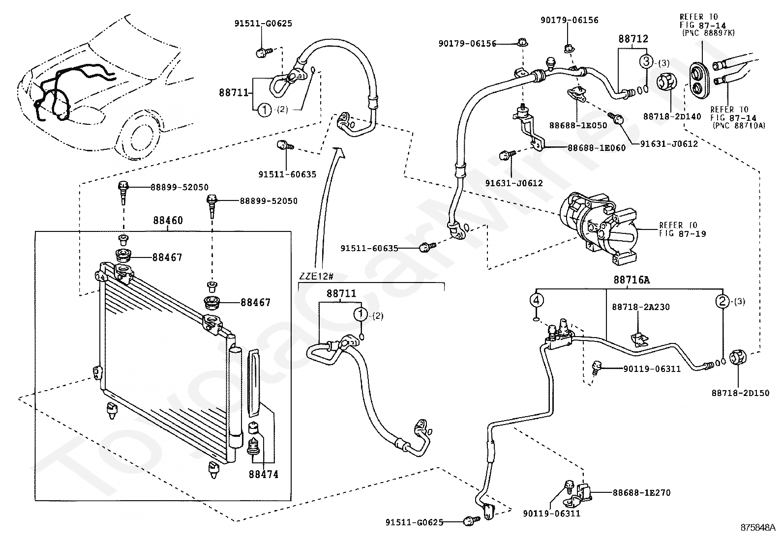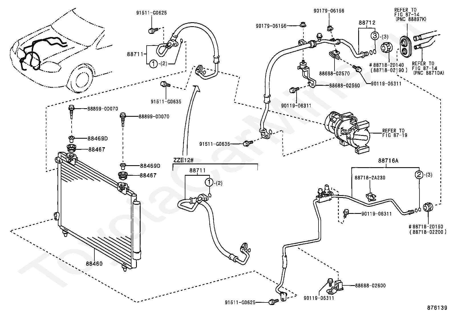 Кондиционер: охлаждающие трубки TOYOTA COROLLA HB (JPP)