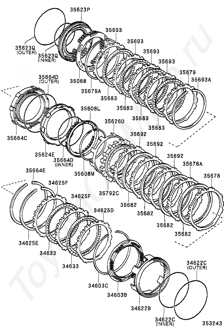 Третий, первый и обратный тормоз TOYOTA COROLLA VERSO