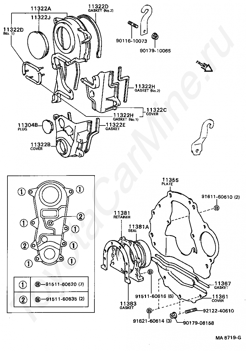 TIMING GEAR COVER & REAR END PLATE TOYOTA COROLLA SED/LB