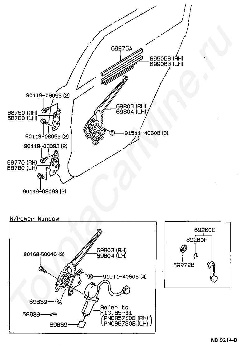 Стеклоподъемник и петли задней двери TOYOTA COROLLA SED/LB/WG