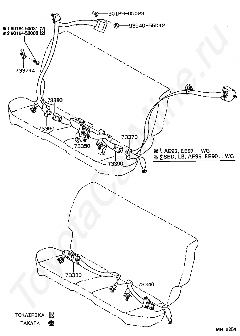 Ремни безопасности и детские кресла TOYOTA COROLLA SED/LB/WG