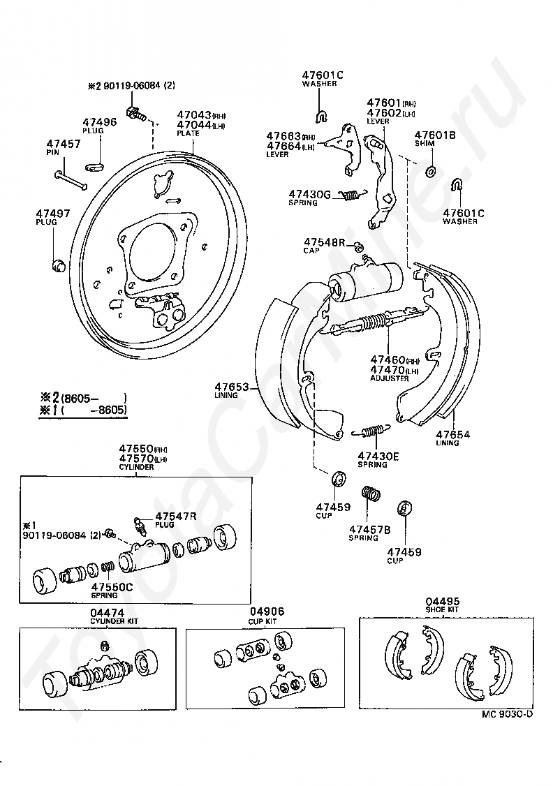 REAR DRUM BRAKE WHEEL CYLINDER & BACKING PLATE TOYOTA COROLLA SED/LB