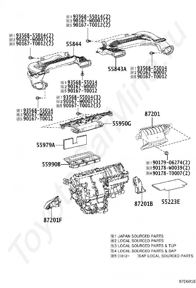 Кондиционер: управление и воздуховод TOYOTA COROLLA