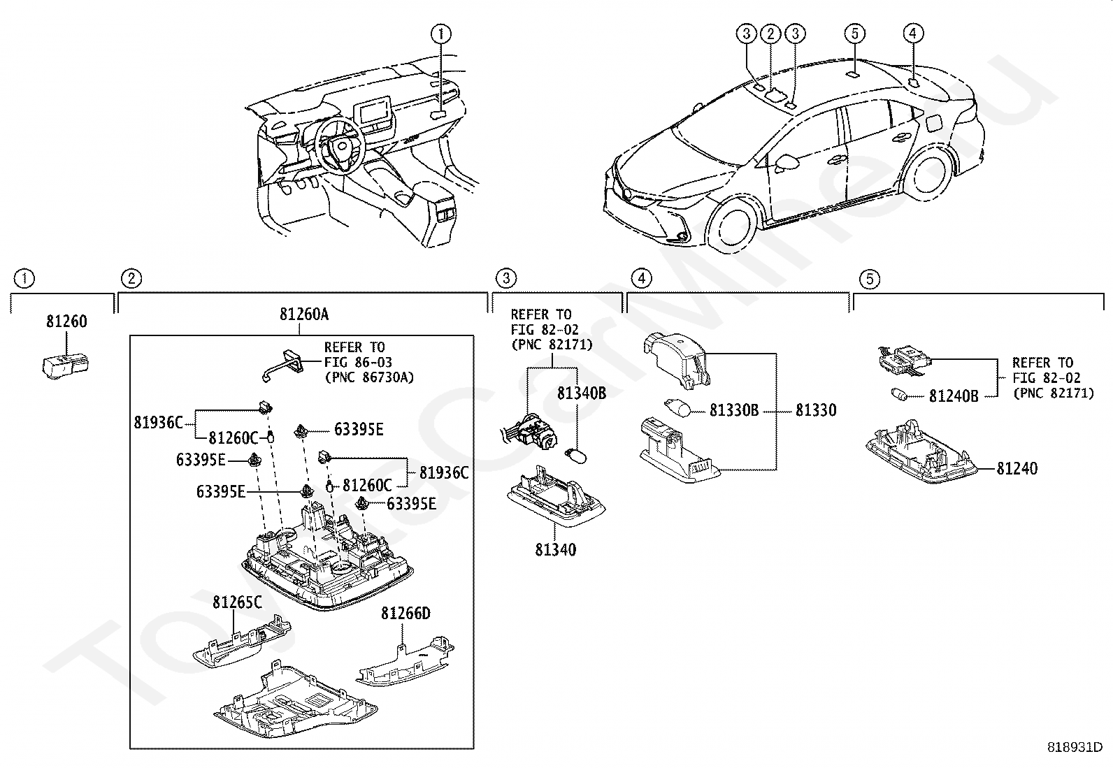 Салонные лампы TOYOTA COROLLA (MEXICO)