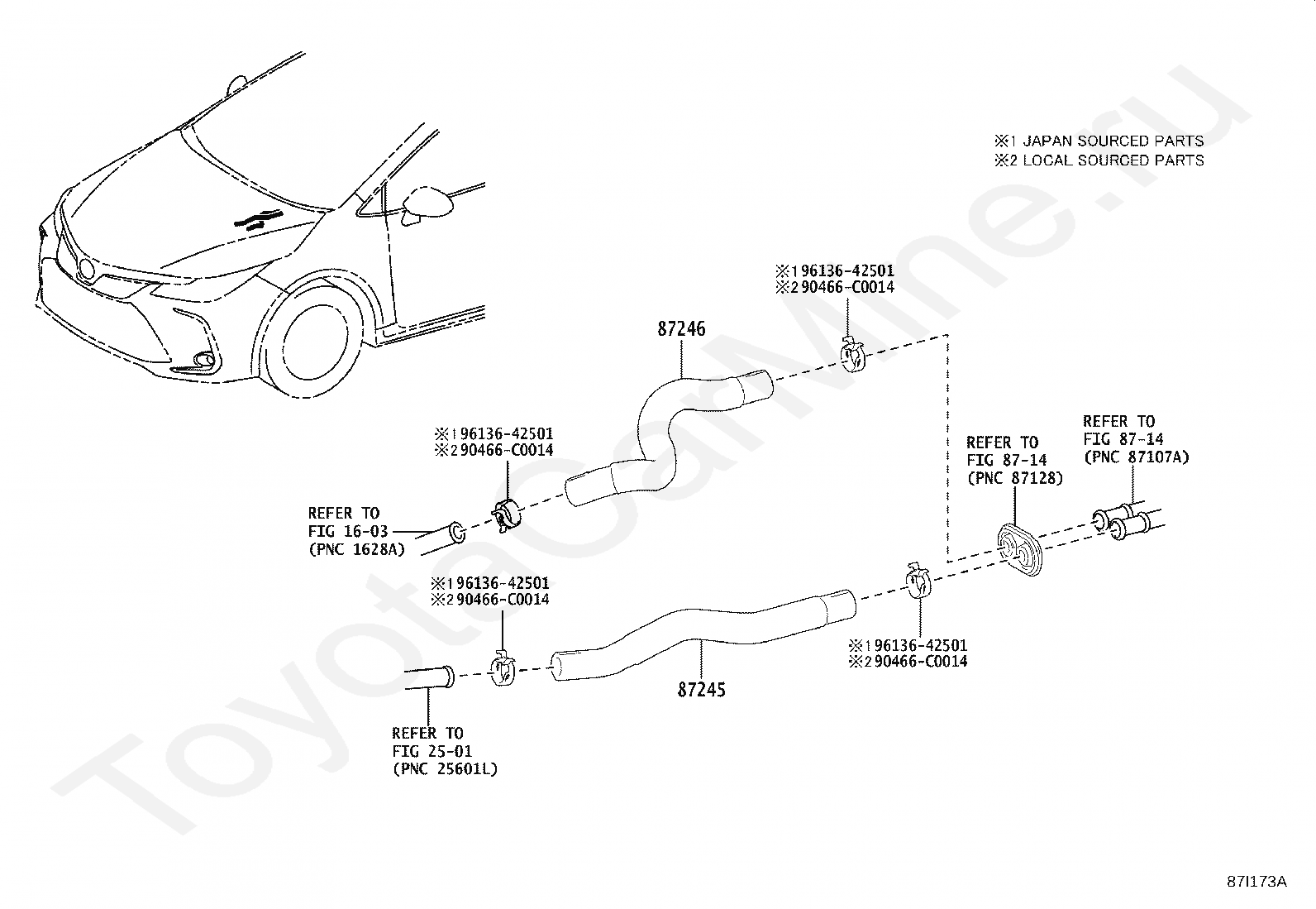 Кондиционер: водяные трубки TOYOTA COROLLA