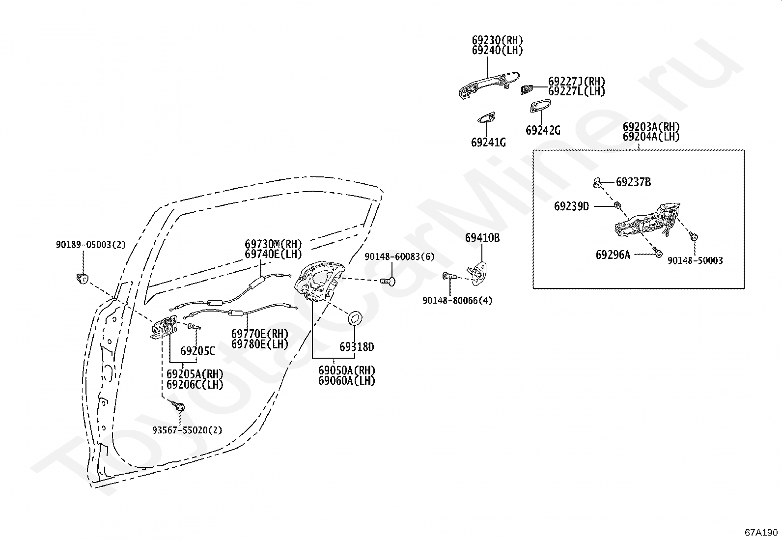Замок и ручка задней двери TOYOTA COROLLA SED (JPP)