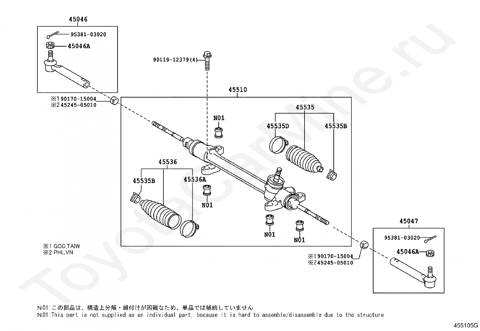 Рулевая рейка и наконечники TOYOTA COROLLA/ALTIS