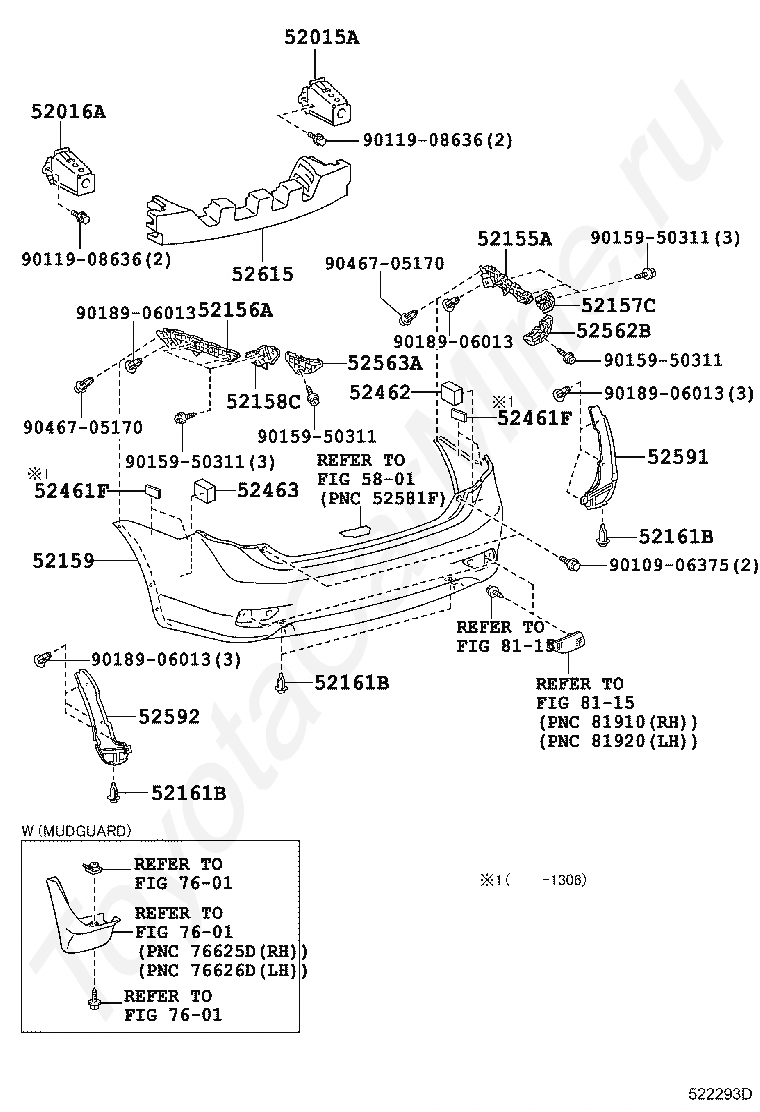 Задний бампер TOYOTA COROLLA SED/WG
