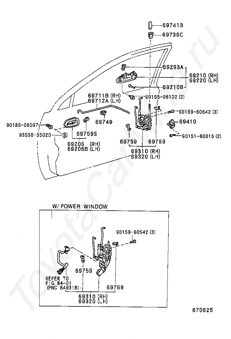 Замок и ручка передней двери TOYOTA COROLLA HB/LB