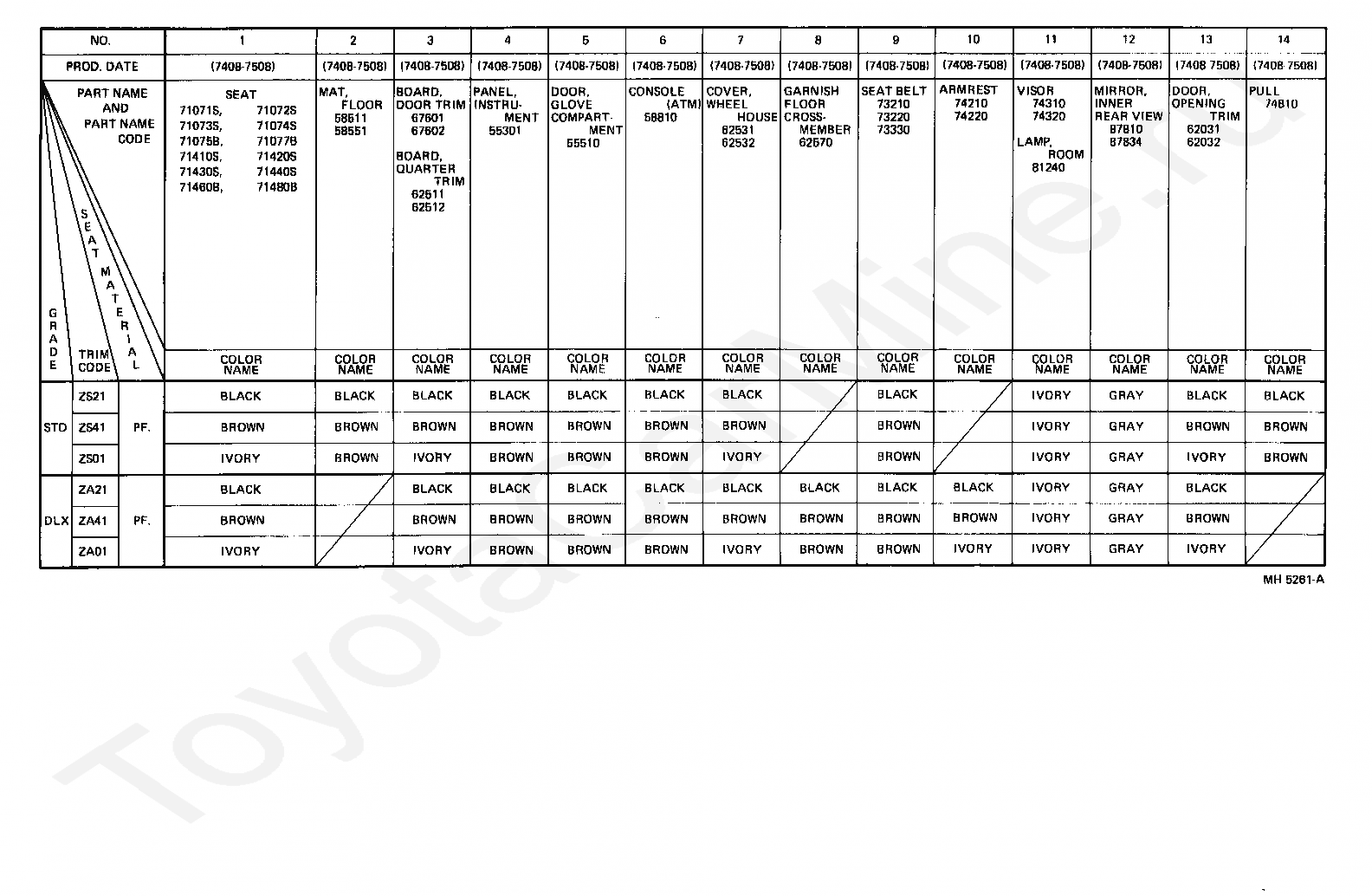 COLOR FINDING TABLE TOYOTA COROLLA/TRUENO
