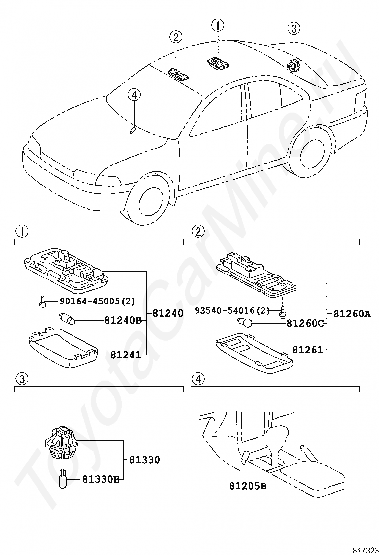 Салонные лампы TOYOTA COROLLA