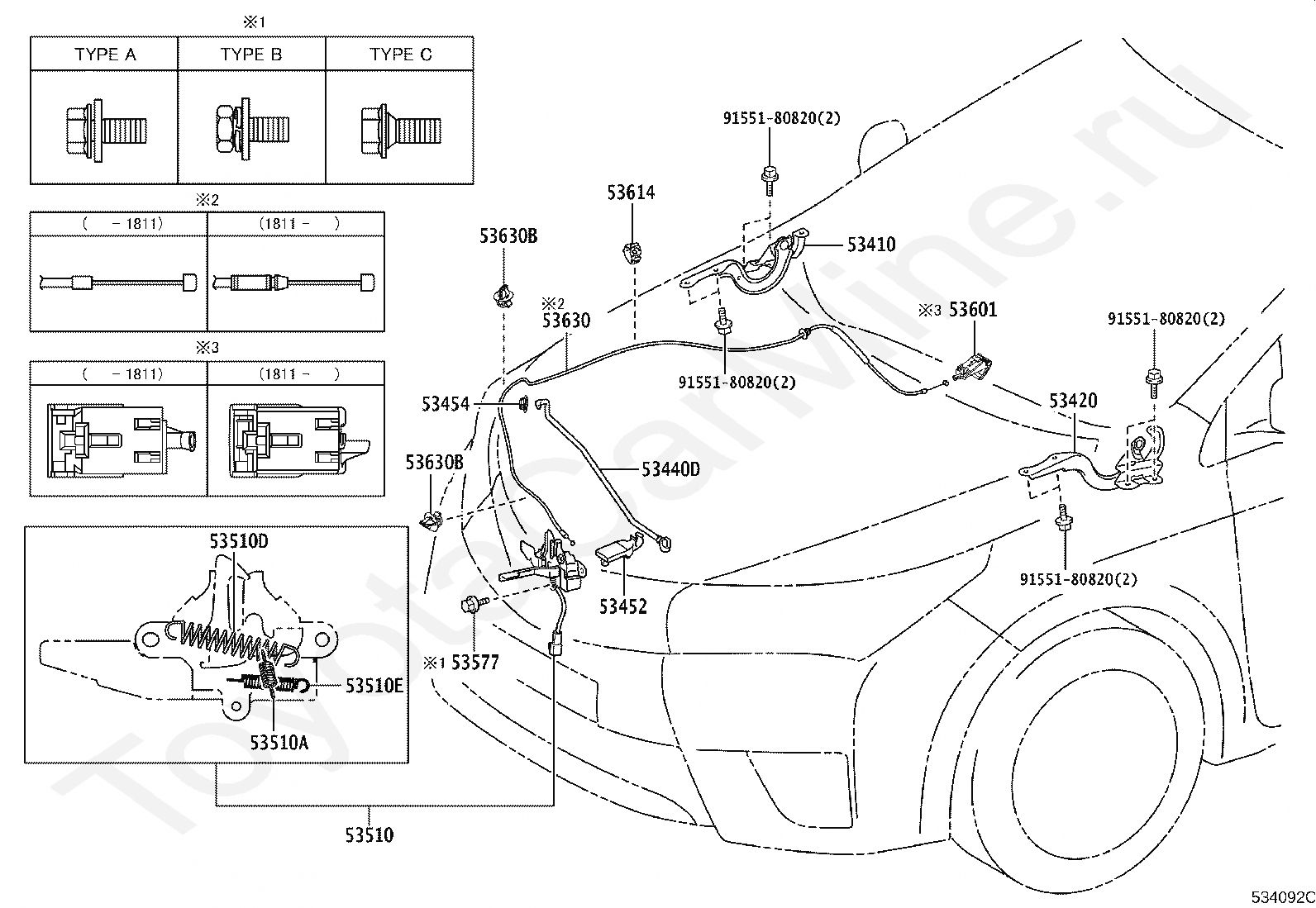 Замок и петли капота TOYOTA COROLLA/ALTIS