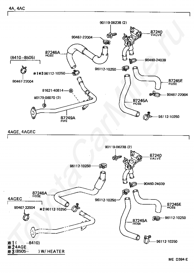 Кондиционер: водяные трубки TOYOTA COROLLA COUPE
