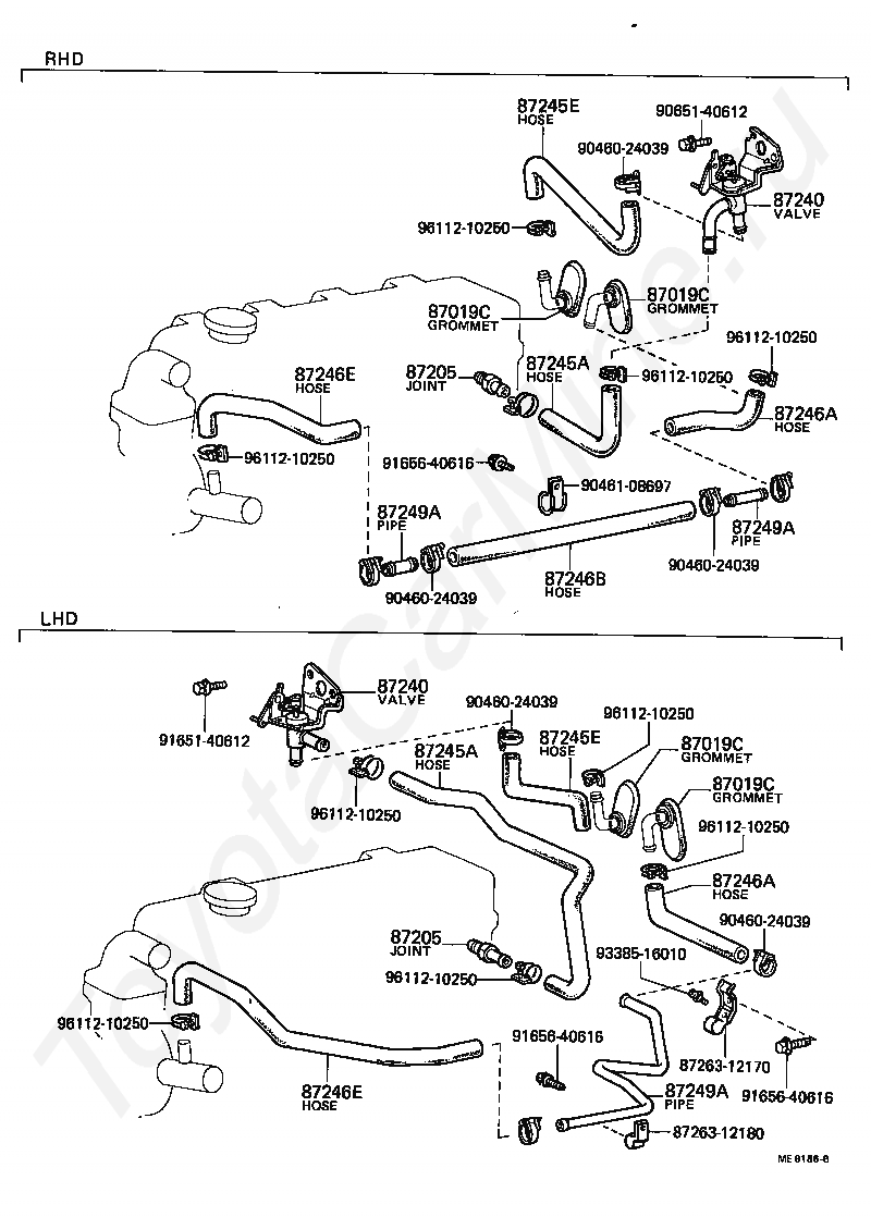 Кондиционер: водяные трубки TOYOTA COROLLA