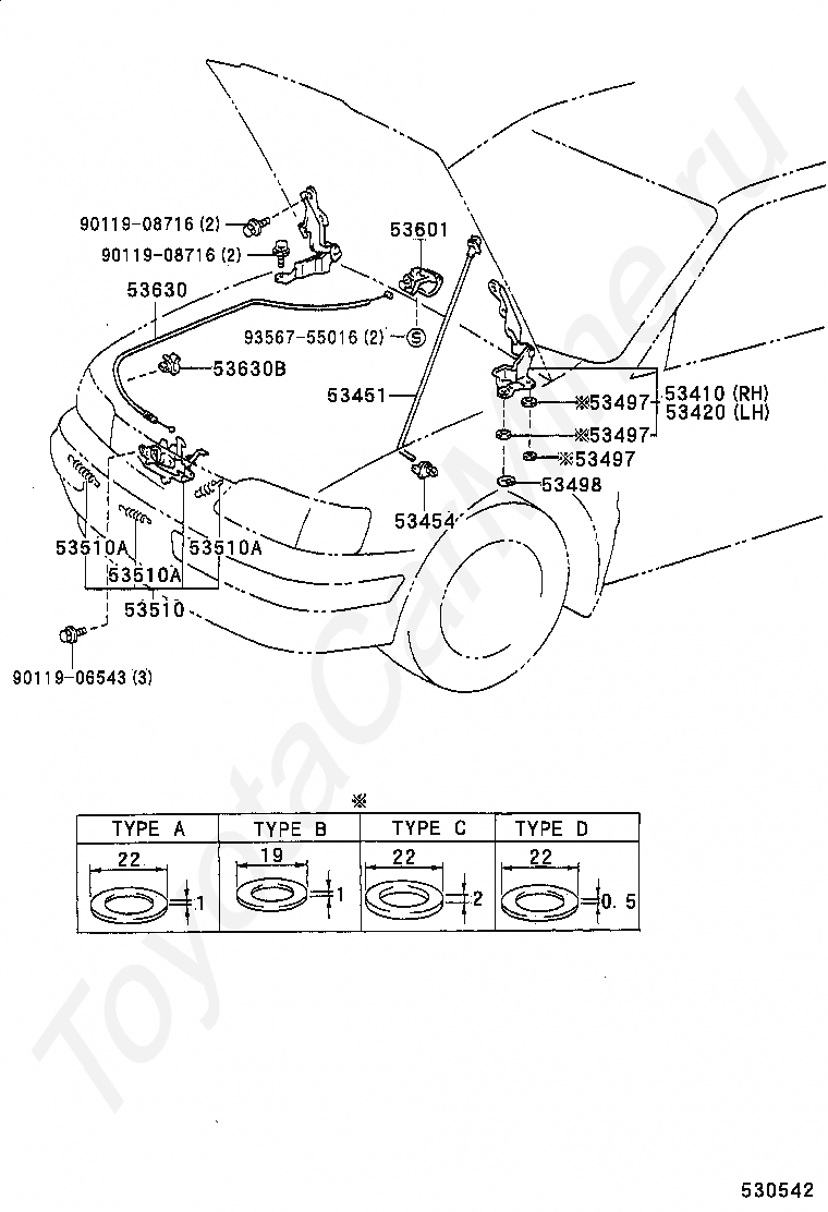 Замок и петли капота TOYOTA CORSA/TERCEL