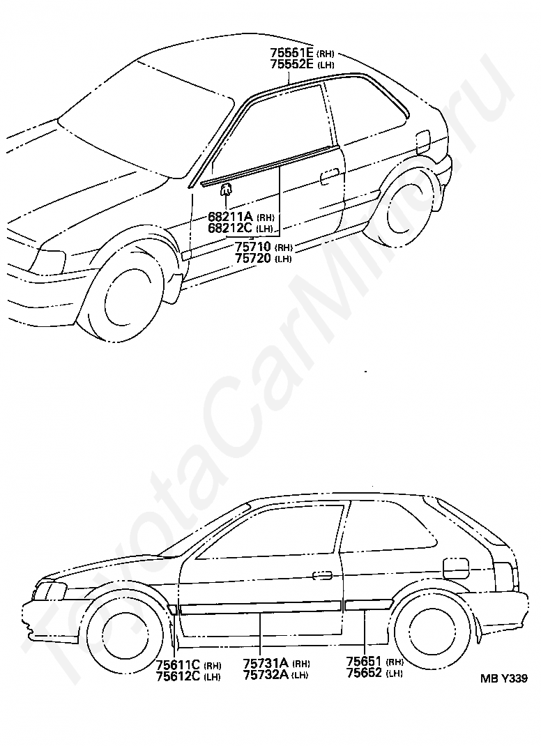 Боковые молдинги TOYOTA CORSA/TERCEL